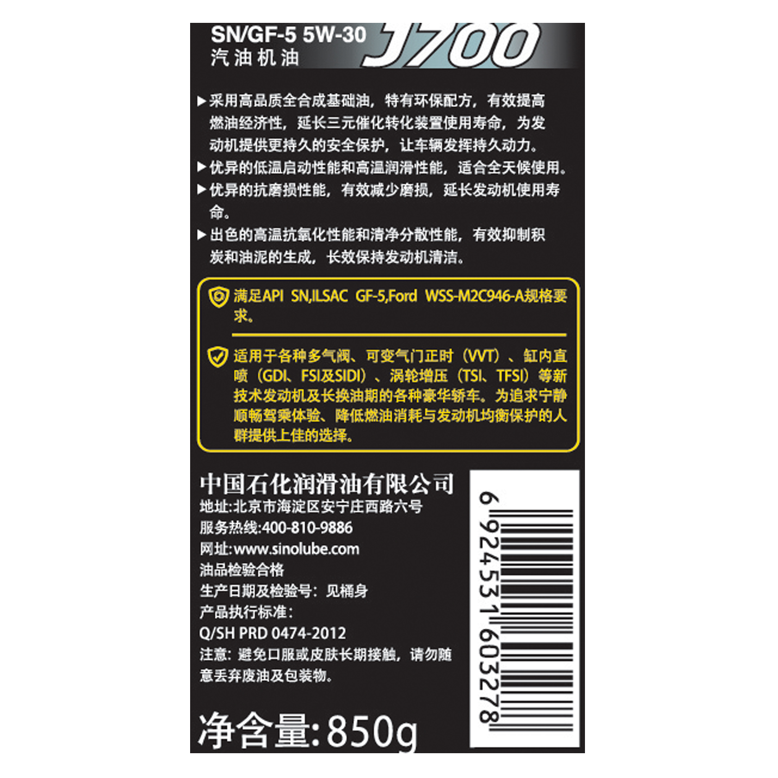 喜欢 2 评论 0 次 浏览 1898 次金吉星J700 SN/GF-5 5W-30 (2017版)