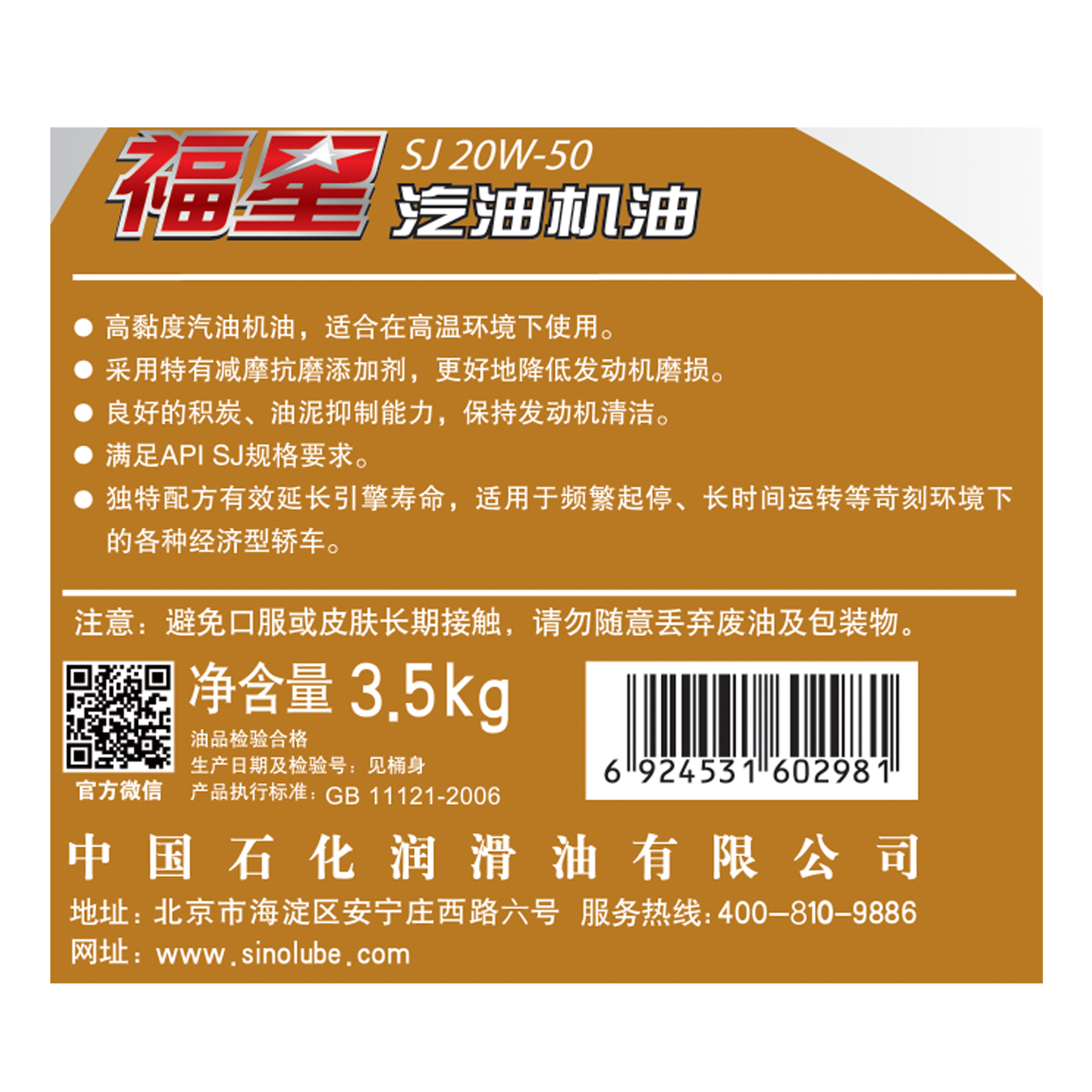 福星SJ 20W-50 3.5kg包装